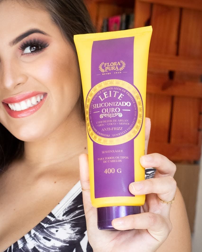 O Leite Siliconizado Ouro 400g da Flora Pura é um tratamiento leve e eficaz para os cabelos, formulado com silicones especiais, D-pantenol e óleos vegetais puros. Ele facilita o desembaraço, hidrata profundamente e protege os fios contra danos do dia a dia. O resultado é cabelo macio, solto, com brilho e sensação de cuidado natural — ideal para manter os fios saudáveis e fáceis de pentear.