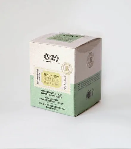 A Máscara Facial Argila Verde da Flora Pura promove limpeza profunda e combate o excesso de oleosidade, ideal para peles oleosas ou acneicas. Sua fórmula natural, com óleo de melaleuca e óleo de oliva, ajuda a remover impurezas e toxinas, prevenindo cravos e inflamações. Aplicada semanalmente, deixa a pele mais limpa, fresca e com aparência renovada, contribuindo com um rosto equilibrado e saudável.